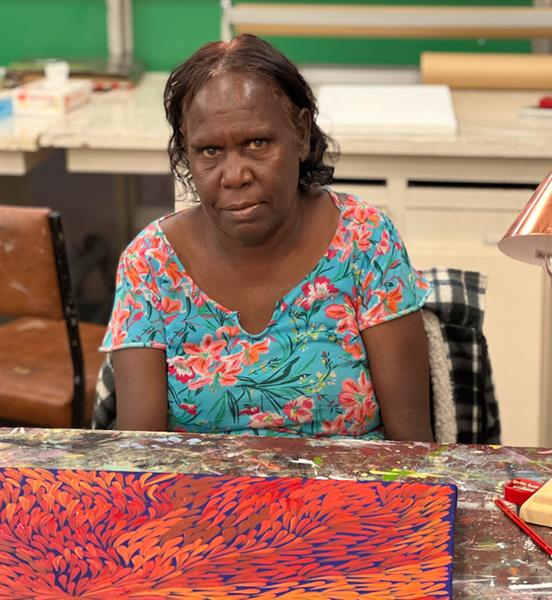 The Artists of the Barkly employ contemporary mediums to celebrate and preserve ancient cultures and languages. The vast breadth of variety in work made across the Collective reflects its cultural diversity, whilst shared elements of visual language illustrate the role of art centres in multi-generational knowledge-sharing.