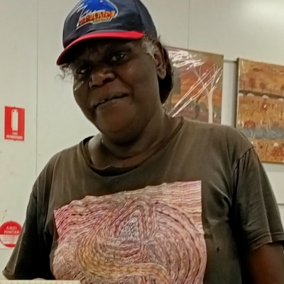 Angelina is an excellent painter and is employed as the Arts Centre Manager at Kira Kiro Arts. Angie has recently graduated from the ANKA Arts Worker Foundation Training Program and the National Gallery of Australia Wesfarmers Indigenous Leadership Fellowship.