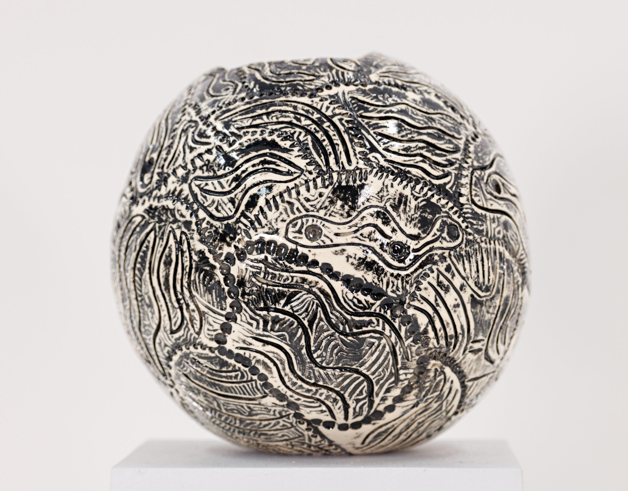 Drawing on the deep connections between culture, land, and spirit in my work, I use ceramics as a means to express the resilience and strength of my people. My ceramic spheres represent charcoal, a symbol of both destruction and renewal, echoing the cycle of life and the importance of keeping cultural fires burning. Charcoal, for me, holds the stories of our ancestors, who lit the fires that continue to guide us today.