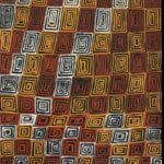 The term jilamara in Tiwi language actually describes the action of painting, but is also used to describe designs in locally sourced ochres. Many of these designs are originally drawn from elaborate ochre body painting applied to the face and bodies of family and dancers during the Pukumani (mourning) and Kulama (coming-of-age/yam) ceremonies. In Pukumani ceremonies it is believed the jilamara disguise the immediate family from the spirit of the dead, leading to very elaborate compositions on the body. In these ceremonies similar designs are also applied to the tutini (carved ironwood Pukumani poles) and tunga (bark bags) which can form central parts of the ceremony. An individual design and aesthetic is highly valued by Tiwi artists and is representative of their personal interpretation of their family’s Tiwi design or jilamara.