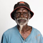 Mickey Wilson’s unique use of fine jilamara (body paint design) in his words are; “all about the clouds we get up here in build up and wet season.” On the Tiwi’s the weather not only indicates the change of seasons, but also indicates times to hold ceremonies such as the Kulama (coming of age ceremony) that occurs at the end of the wet season when a ring apears around japarra (the moon). Indictaors of seasonal change can also mark the coming of different hunting seasons, like the coming of large wet season clouds over the wetlands of Melville Island during the build up months signals the start of Naganari (Magpie Goose) hunting. Wilson’s combinations of marlipinyini (lines) and pwanga (dots) in ochre design outline the changing combinations of clouds and rain that make up the various seasons of the tropical Tiwi Islands.