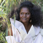 The boab nut comes in all different shapes and sizes and color. The boab nut in Miriwoong Country is called the Gerdewoon in Miriwoong language. The boab nut can be cracked open after it falls to the ground and inside the boab nut it has white flaky substance which is eatable also a boab nut seed is inside which is covered with it. The boab nut is our traditional bush tucker in Miriwoong Country. Artists make paint and create this boab nut either by painting on board, paper or craving and ceramic creating a beautiful art of work.