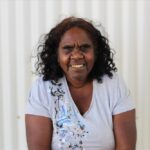 In preparation for a special dancing ceremony, the women walk through the bush, looking for what they need. They collect soft white feathers from the cockatoo and ochre from the ground. The white and orange dots shows the earthy ochre they use for painting their bodies. The white oval shape are the smooth rocks the women use for grinding the ochre. The curved shape are the women sitting down with their dancing sticks.